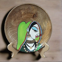 Intricately painted the beauty of women on a wooden concave plate. Excellent item to be gifted. It can be placed on a stand or hung on the wall. The wooden effect makes the portrait real. A hook has been provided at the back to facilitate hanging as shown in image 3. *The stand shown is not included with the product.