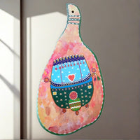 Handpainted wooden planks depicting our transport facilities in the early years of the 19th century. Some of the vehicles are still in use with modifications. Excellent gifting option *The planks are irregular cut out of teak wood and are washable. It has a tiny hole for hanging.