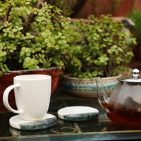 Marble has unique, natural properties that make it popular and its elegance is unmatched.These coasters are perfect for placing beneath teacups, wine glasses, and mugs. These coasters with dual colour white and green will adorn your dining area. *The set has 4 pieces