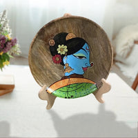 Intricately handpainted the beauty of women on a wooden concave plate. Excellent item to be gifted. It can be placed on stand or hung on the wall. The wooden effect makes the portrait real. The wall plate comes with a hook at the back which can be used for hanging as shown in image 2. *The stand shown is not included with the product.