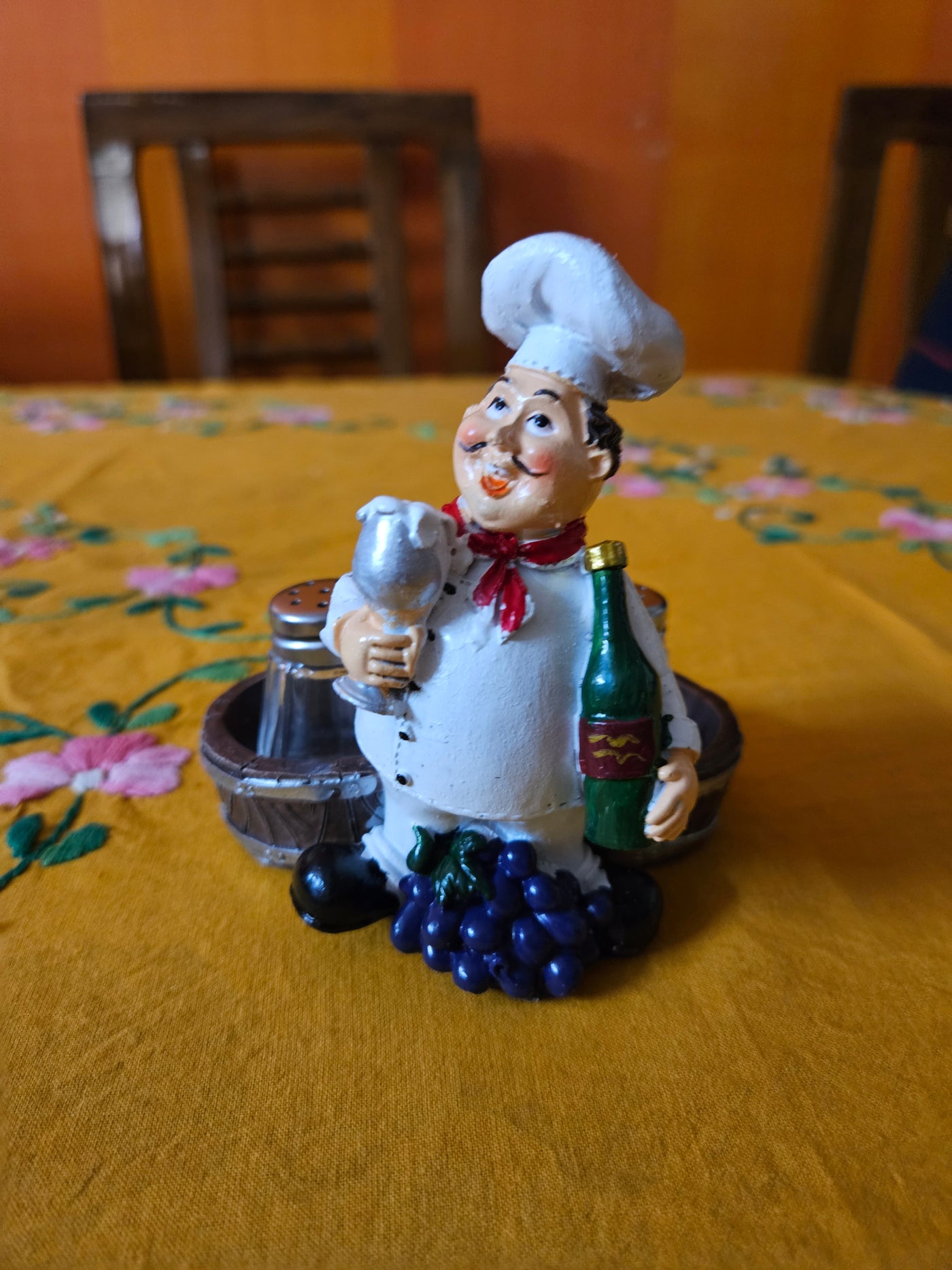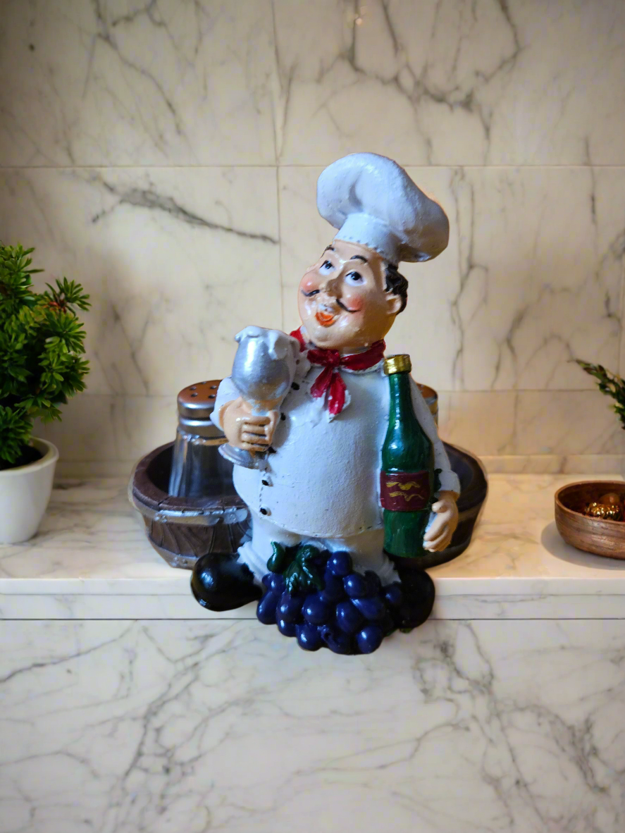 L x W x H- 4.5x3.5x5 inches Material: Made from durable, high-quality resin, this chef statue is designed to last while offering a smooth, glossy finish.
